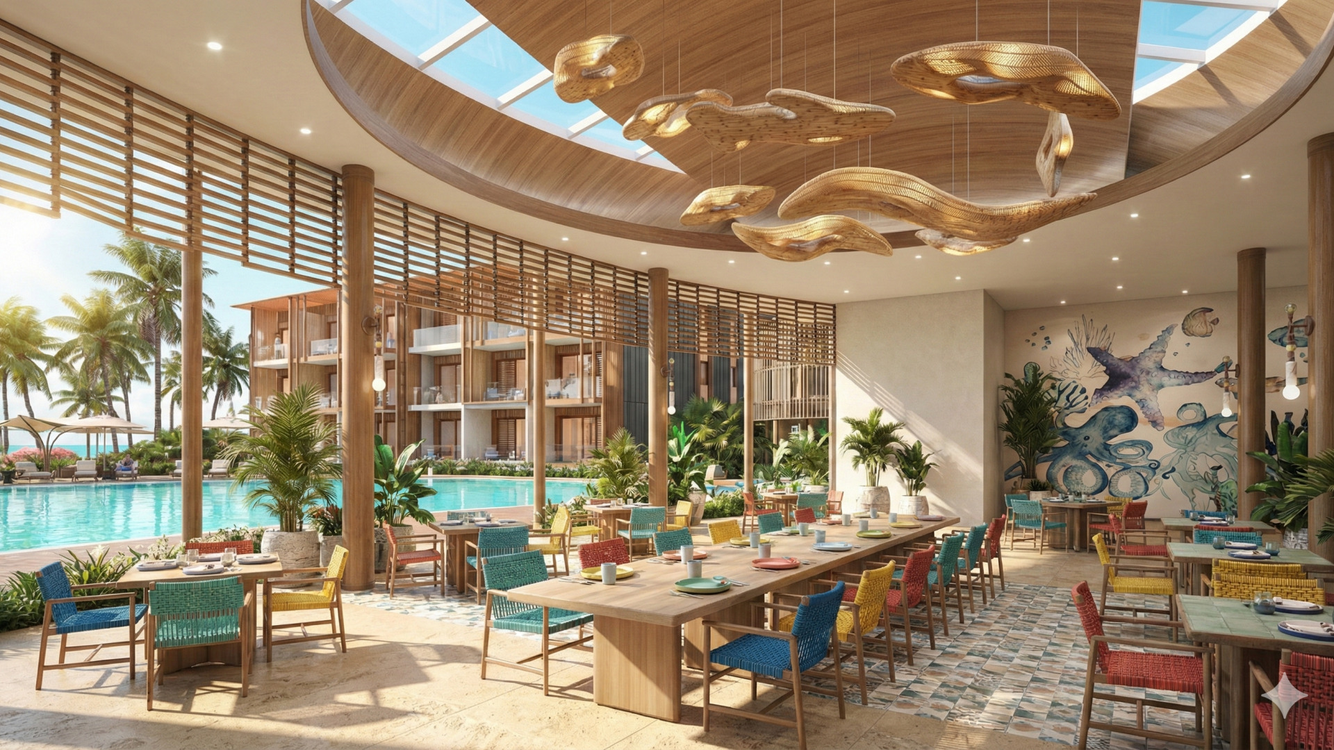 A relaxed day-to-night seafood destination offering live grilling, crafted drinks, and a vibrant beachfront or poolside atmosphere.